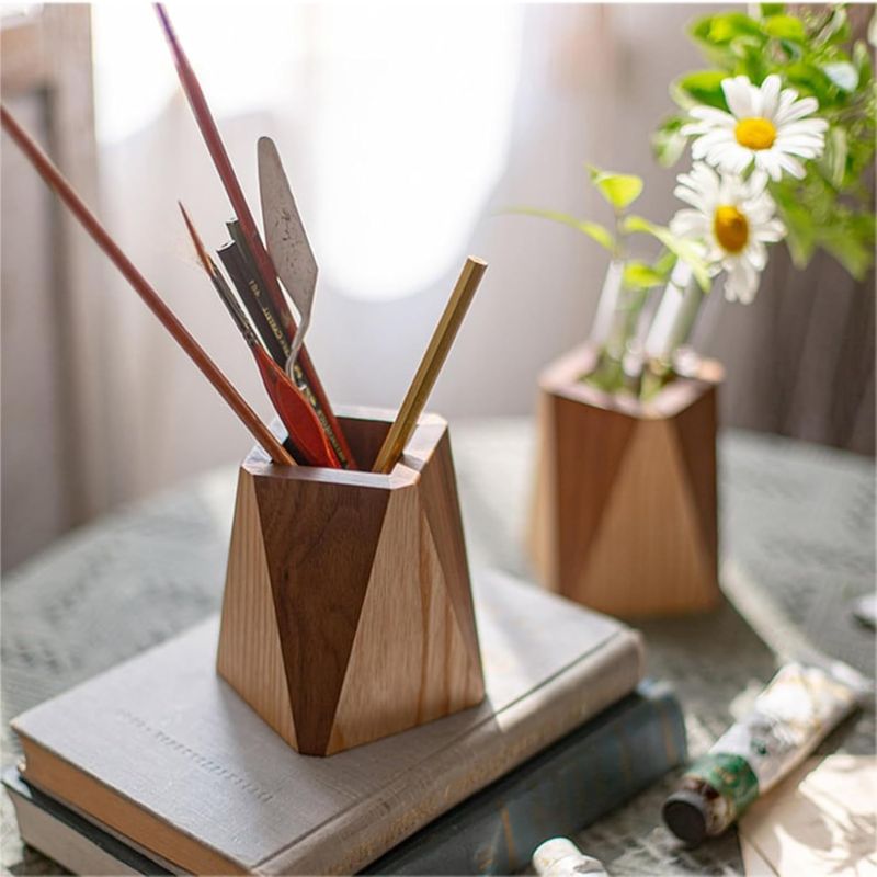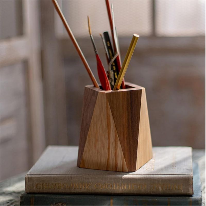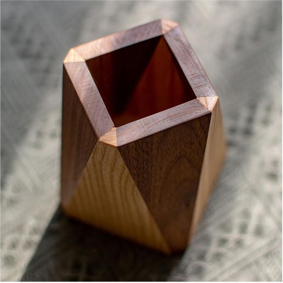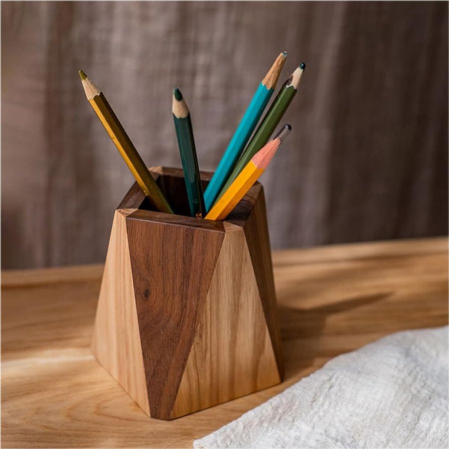 ᵀᴹ Diamond Shaped Wooden Pencil/Pen Holder -Cherry & Sheesham Wood Desk Organizer, Wooden Minimalist Pen Box, Home Office Decor, Gift for Kids