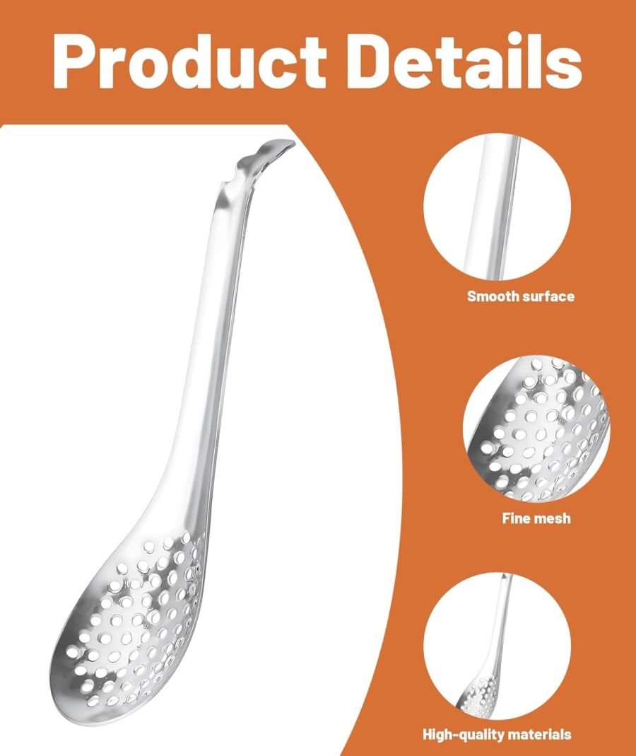 Stainless Steel: Crafted from high-quality stainless steel, these spherification spoons are rustproof and durable for long-term use; The slotted spoon design ensures efficient draining while handling delicate ingredients
