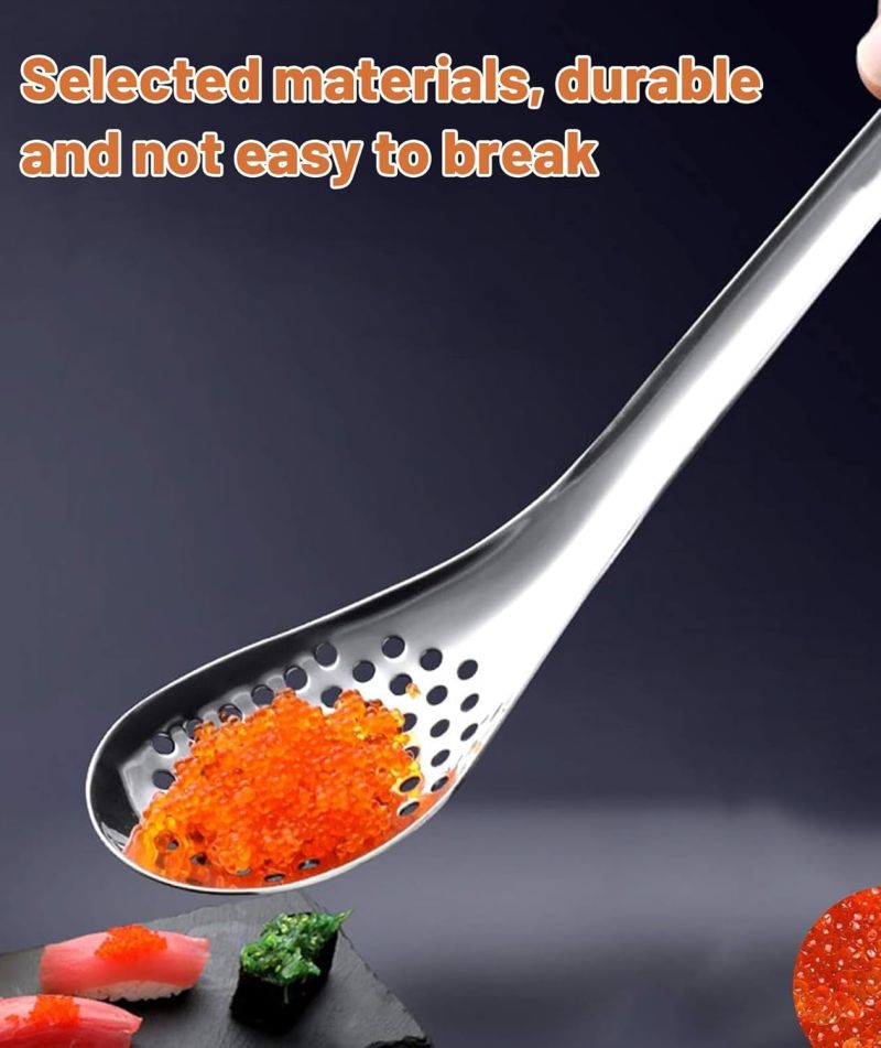 Slotted Design: Spherification spoon features evenly distributed slots for consistent caviar or sphere formation; Ideal for molecular gastronomy techniques like spherification and reverse spherification in professional or home kitchens