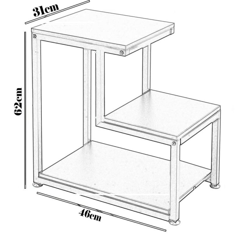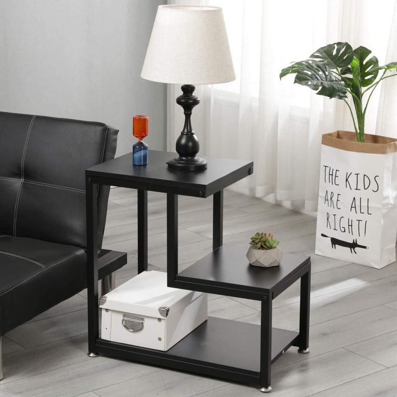 3 Tier Sofa Side Table, Modern Coffee Table Nightstands with Metal Frame and White MDF Desktop for Living Room Bed Room Decor (Brown Black)