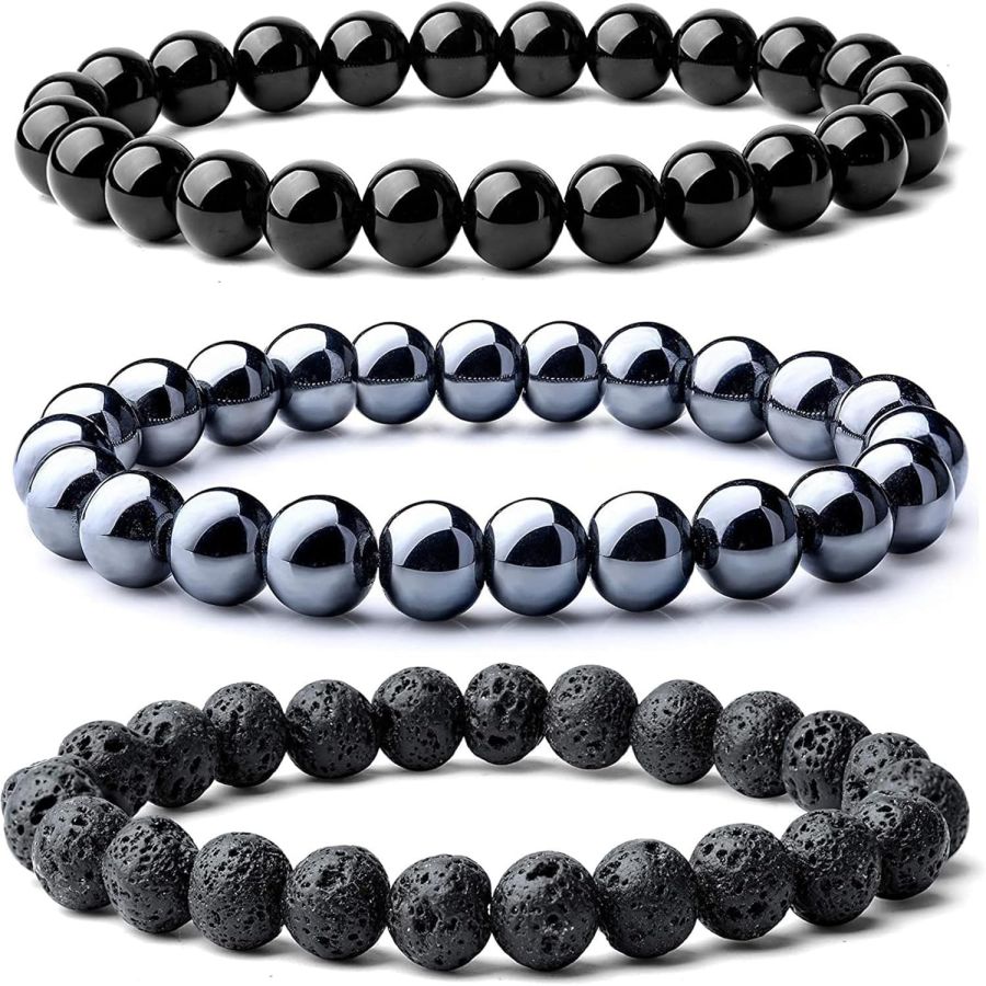 3Pcs Bracelet for Boys, Black Bracelet Set for Men, Stylish Black Bracelet