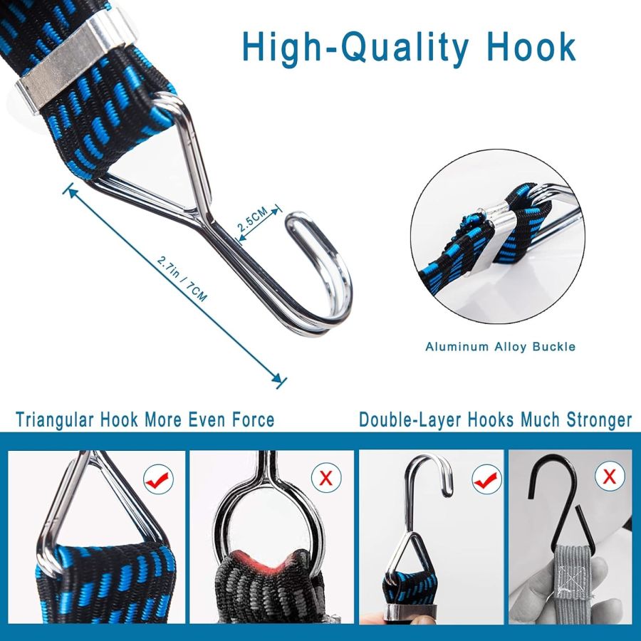 4Pcs Luggage Strap for Motorcycle Bike with Metal Hooks, 3.3ft High Elasticity Bungee Cord Elastic Rope for Cargo Travel Packaging
