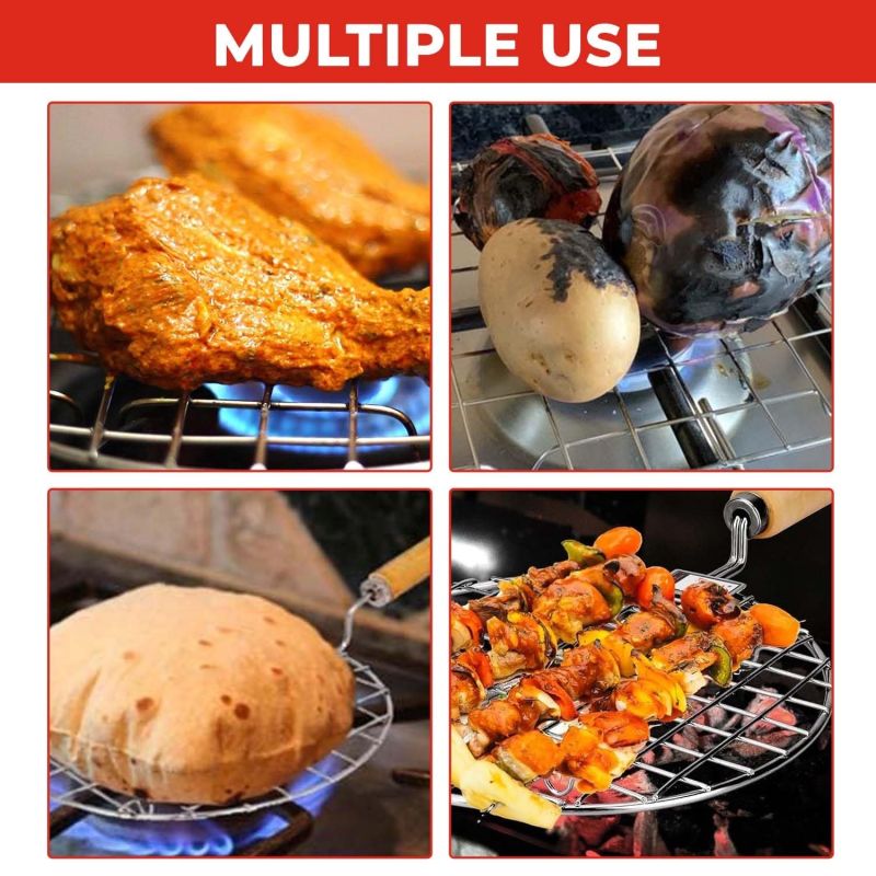 ✅ MULTIPLE USE: The net is designed in such a way that you can prepare multiple items like papad, roti, fulka, paneer, aloo, french fries, brinjal bhurta, other vegetable can be barbeque as well !!