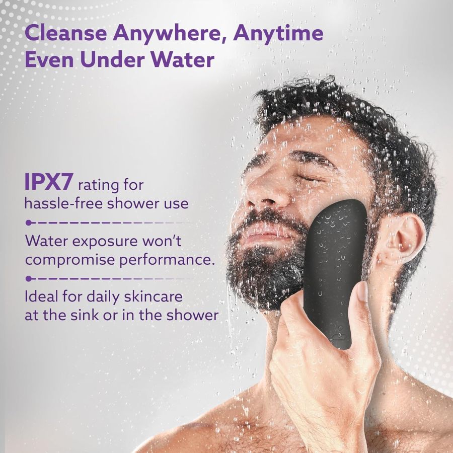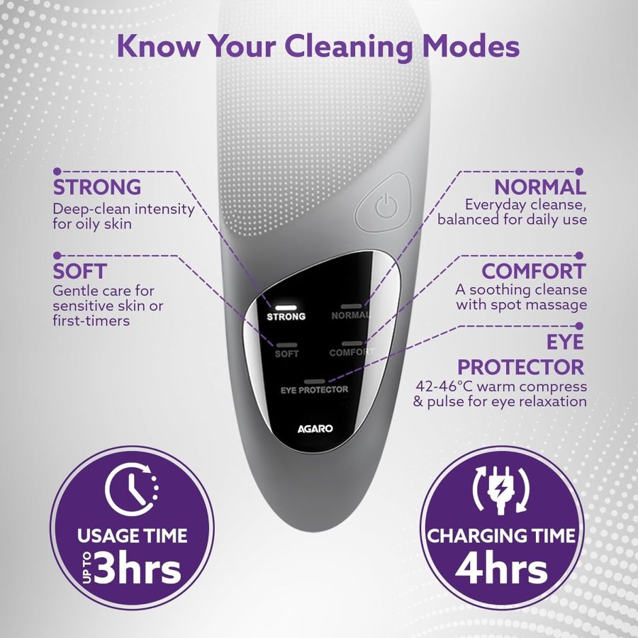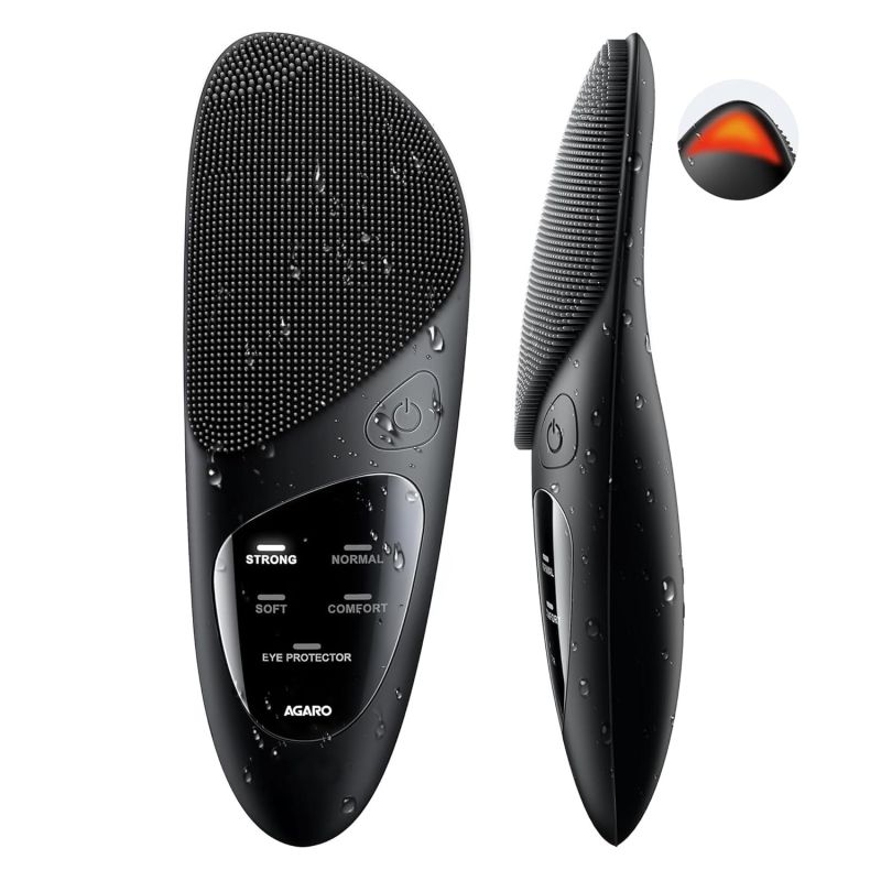 AGARO CM2407 Facial Cleansing Massager with Sonic Vibration Technique, 5 Cleaning Modes, Waterproof, Soft Silicone Bristles, Handheld, Black