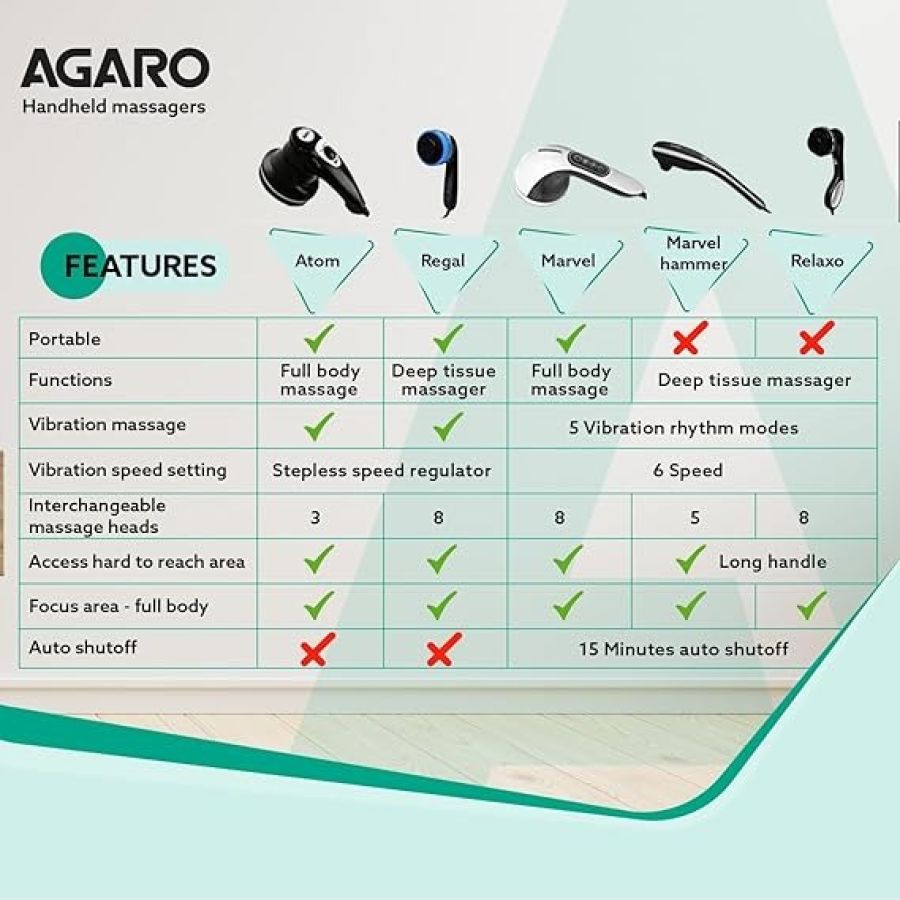 AGARO Relaxo Electric Handheld Full Body Massager with 8 Massage Heads, 5 Mode & 6 Speed Settings for Muscle Relief & Relaxation (Black), Back, Leg & Foot.