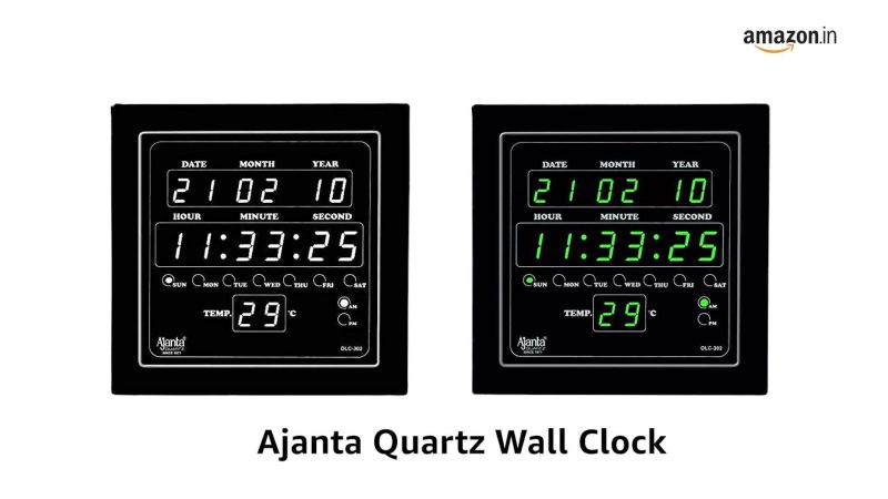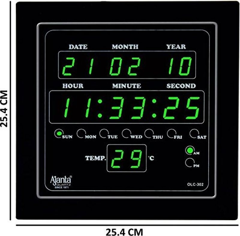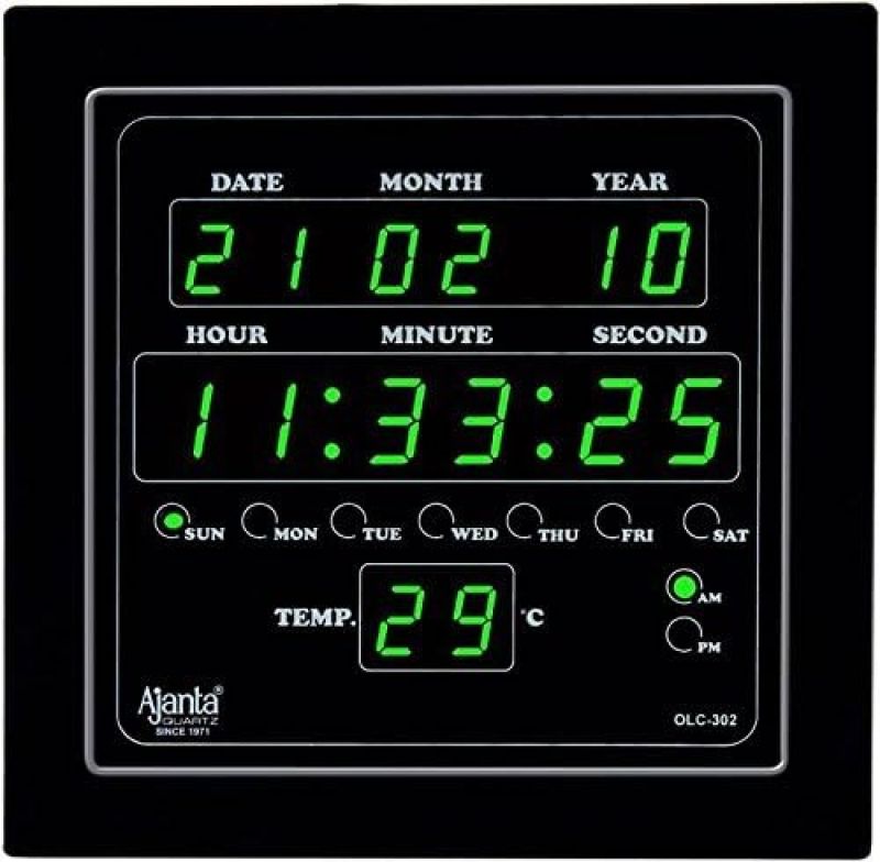 Ajanta Quartz Glass Abstract Digital Green LED Square Wall Clock OLC - 302 (25.4 cm x 25.4 cm x 3.5 cm)