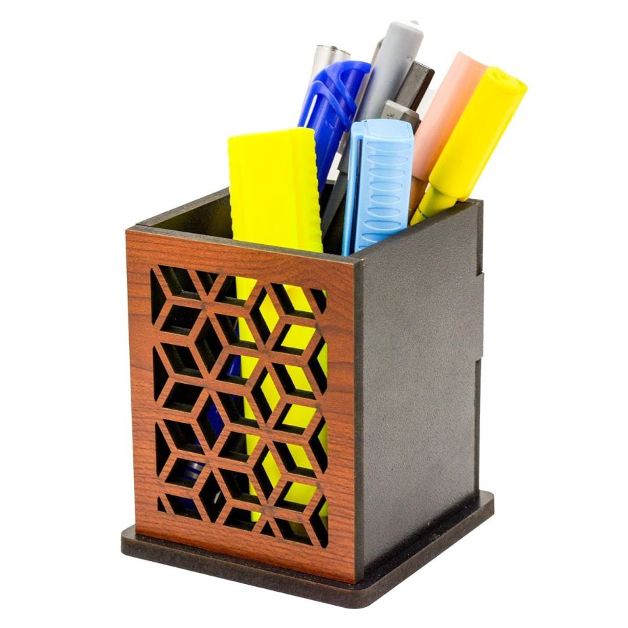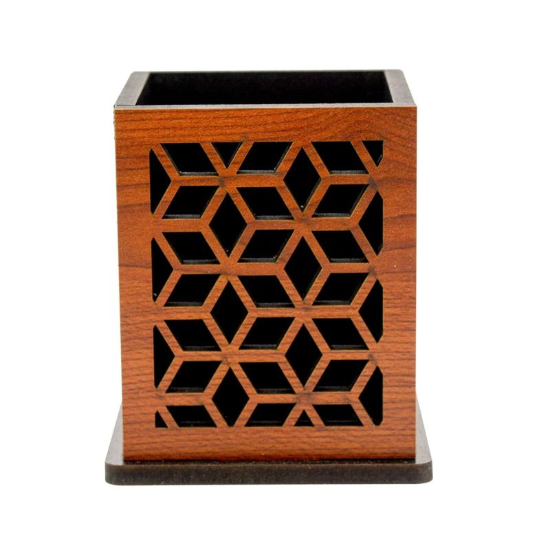 AJANTA ROYAL Decorative Wooden Pen Holder, Royal Design Pattern, Corporate Gift, 3.75 x 3.25 x 3.25 inches, PPS-13 (Brown)