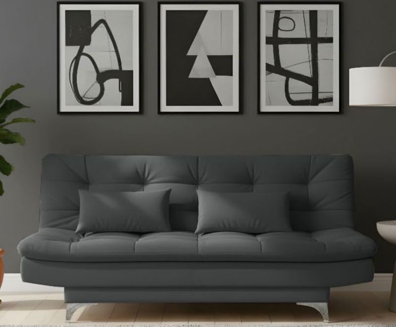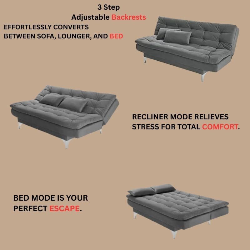 AMATA Eagle Solid Wood 3 Seater Sofa Cum Bed Grey Suede Velvet with Two Cushions Perfect for Home Living Office Room and Guests (Grey, Medium)(3 yrs Warranty)