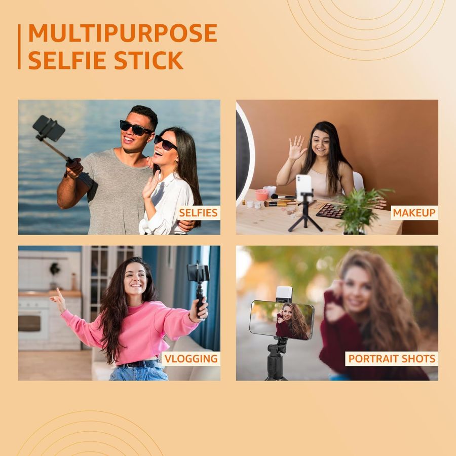 Phone Tripod Stand: The selfie stick doubles as a tripod stand for your smartphone. It features adjustable legs that allow you to set up your phone at various angles and heights, providing stability and hands-free operation. The tripod stand is especially useful for capturing group shots or videos without the need for holding the stick.