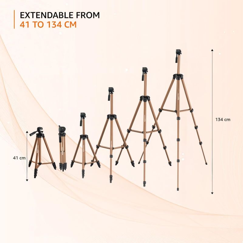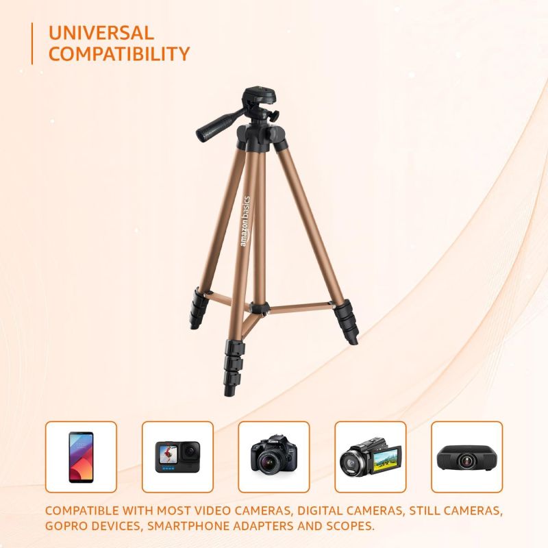 Amazon basics Lightweight 41-134cm Tripod with Mobile Holder & Carry Bag | for All Camera/Go pro/Smartphones| Copper