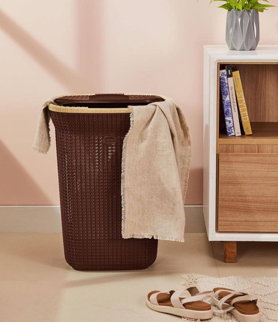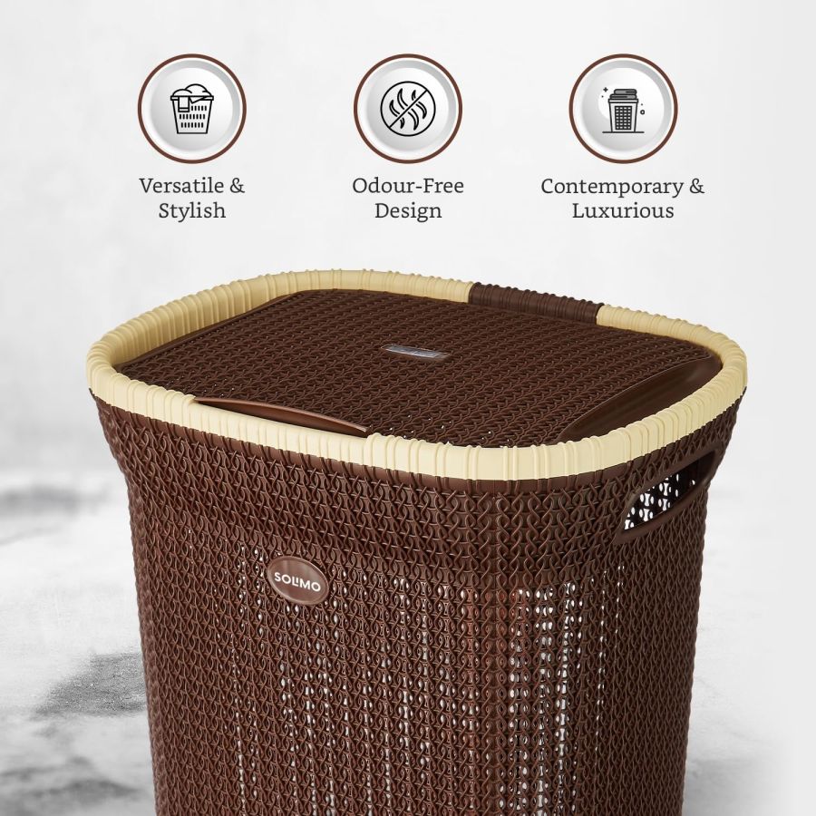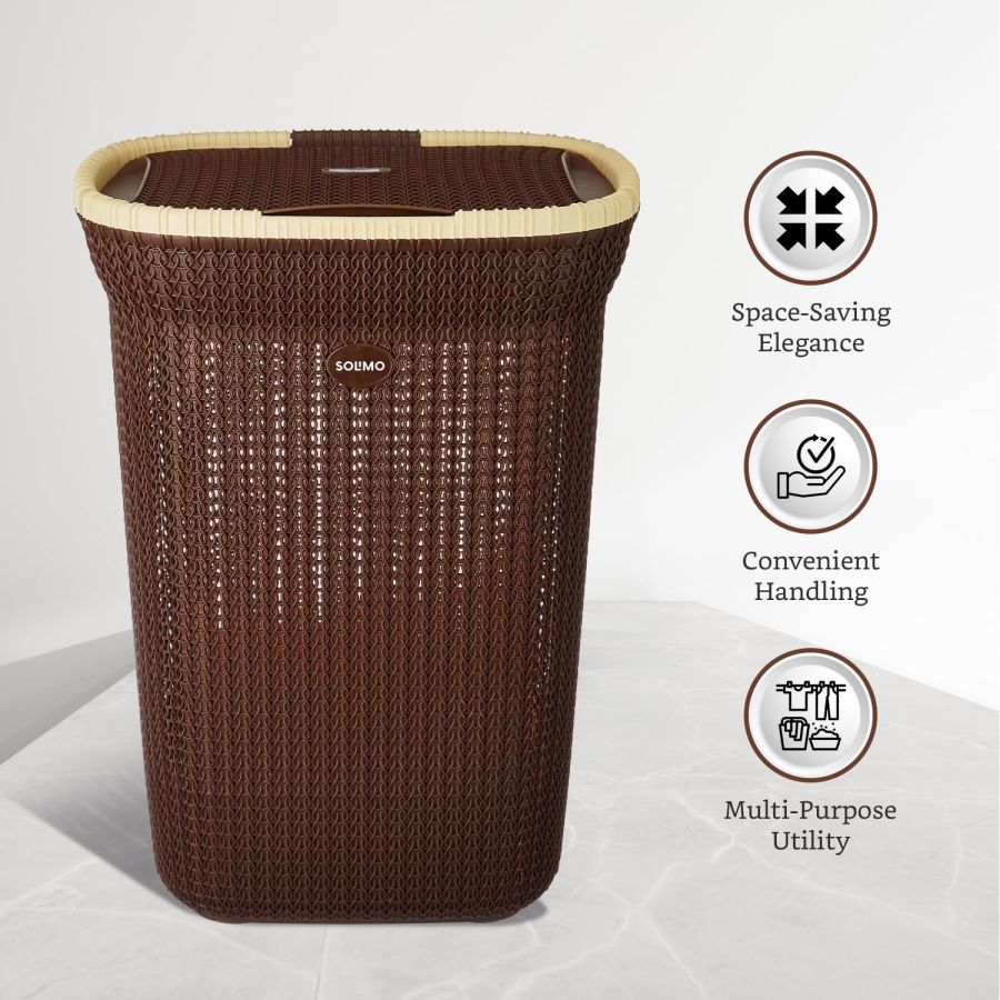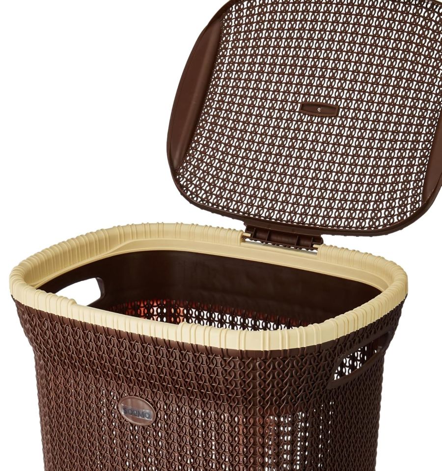 Amazon Brand - Solimo Knit Laundry Basket - Big - 55 Litres - 44 Cm X 35 Cm X 61 Cm | Dark Brown - Plastic