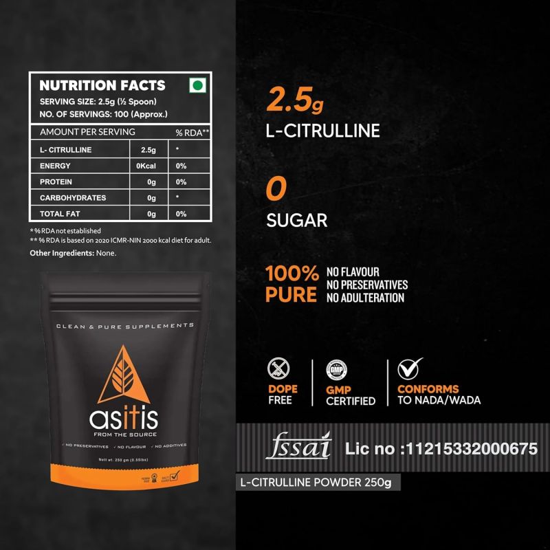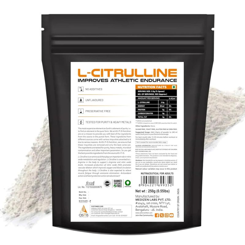 AS-IT-IS Nutrition Pure L-Citrulline Powder, Boosts Nitric oxide & muscle growth (100gms)