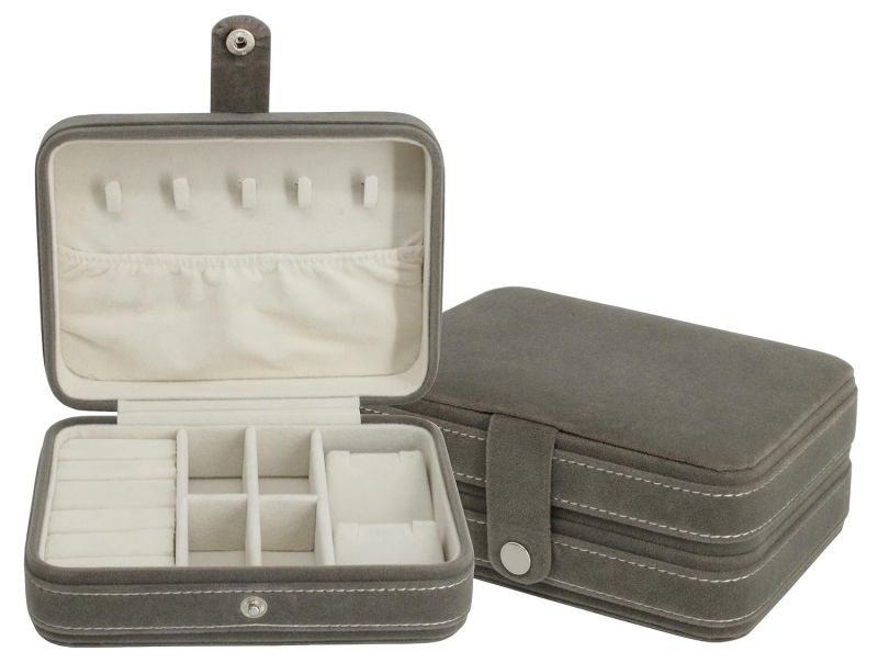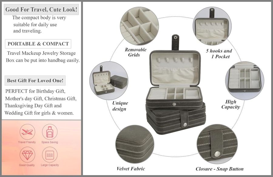 Color :- Grey, Closure Type :- Snap Button, Fabric:- Velvet and Fabric, Dimensions: size: 17 x 12 x 7 Cm - Durable, Portable, Sophisticated and Stylish Makeup jewelry Box, Convenient Cosmetic Jewelry Packing organizer.