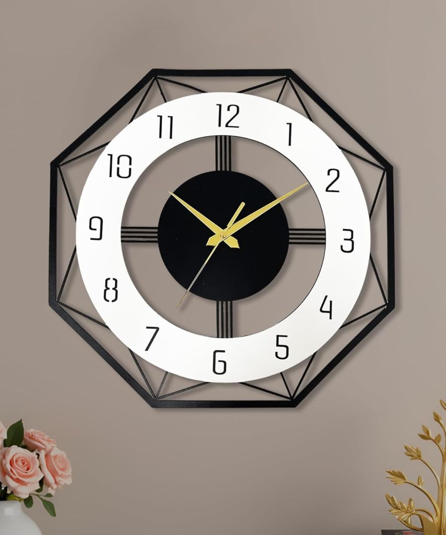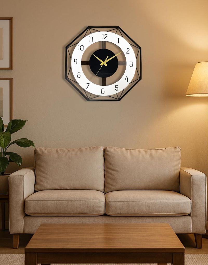 ???????????????????????? ???????????????????????????????????? ???????????????????? ???????????????????????? – Stylish hexagonal metal wall clock adds a bold, aesthetic touch to your living room, hall, or office wall. Perfect for modern home decor themes and ideal for enhancing interiors with geometric art.