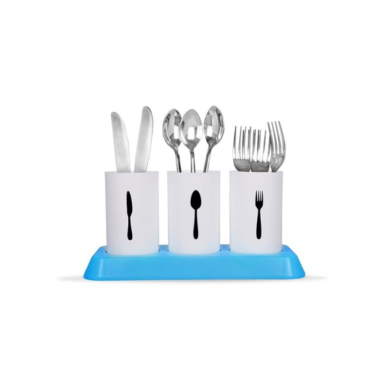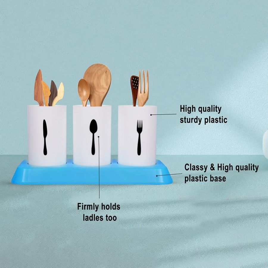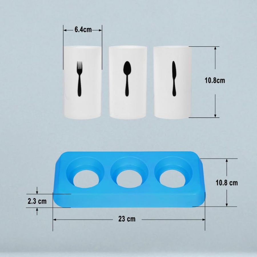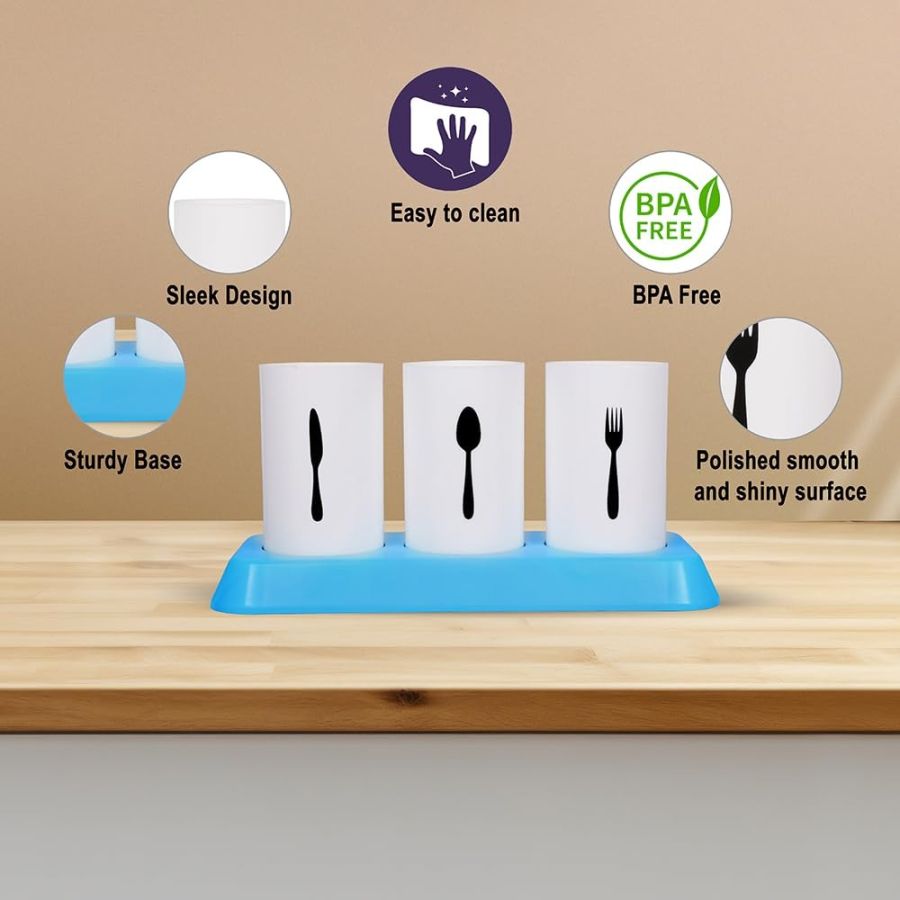 STYLISH UTENSIL STORAGE: The kitchen organiser stand for dining table is designed with 3 removable cylindrical cups and a plastic stand, ensuring durability and resistance to water, oil, moisture, and other substances. Ideal for storing and organizing utensils like spoons, forks, knives, chopsticks, and more, this kitchen stand is perfect for keeping your utensils neatly arranged.