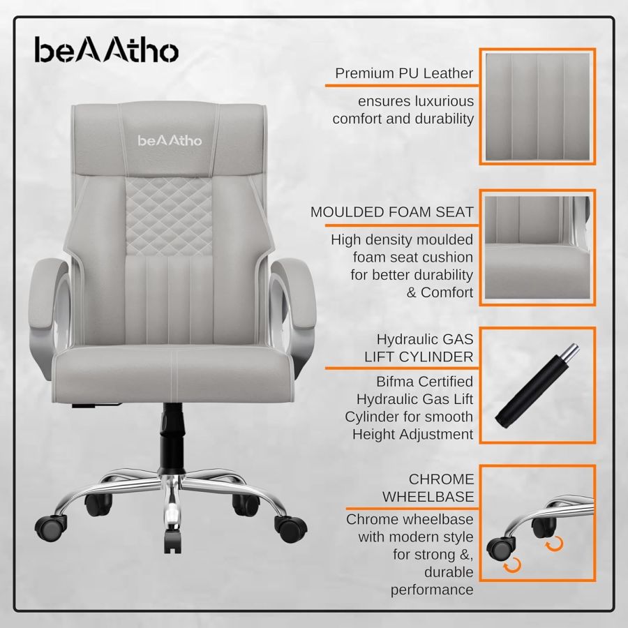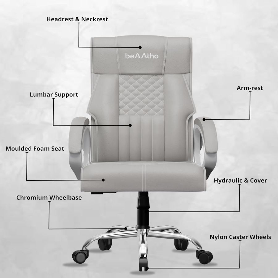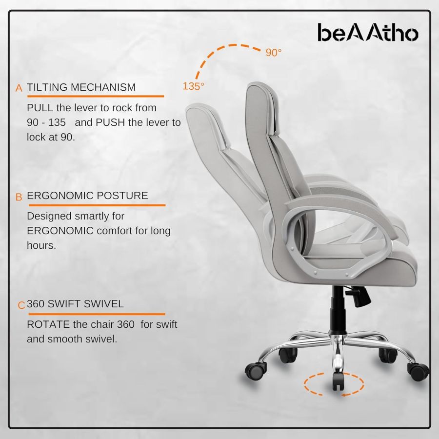 Smooth Swivel and Tilt Functionality: Enjoy seamless 360-degree swivel rotation and a tilt mechanism that enables you to recline the chair for relaxation or focus.