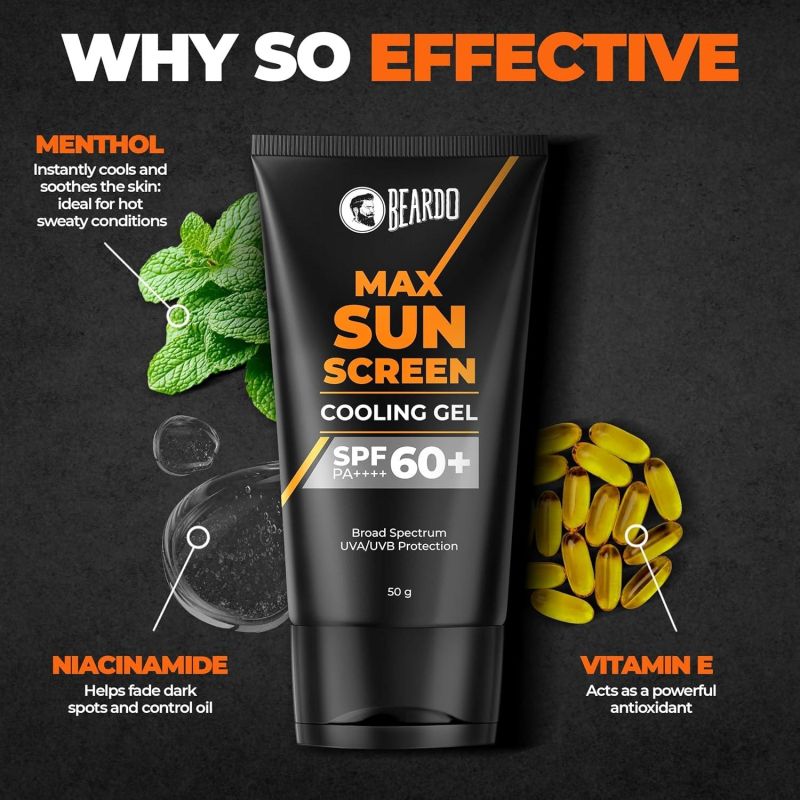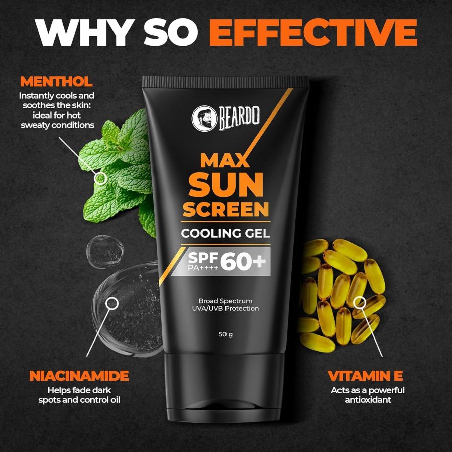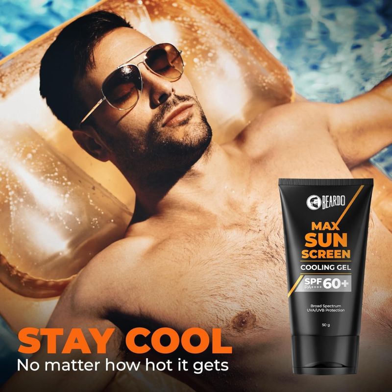 Beardo Max Cooling Gel Sunscreen SPF 60+ PA++++|UVA/UVB Protection | No White Cast |Ultra Lightweight Texture | Non-Greasy |Sunscreen for Men