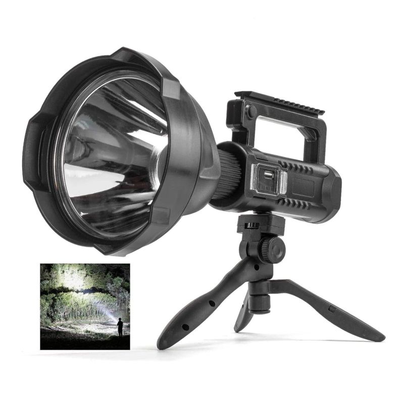 ????【Removable Tripod & 360 Degree Rotate】This powerful LED spotlight comes with a removable hand-free triangle bracket. In addition, not only can this rechargeable spot light be adjusted up and down 90°, but also can be rotated 360°. This searchlight is a great helper while you are in camping, fishing, emergency operations and other situations.