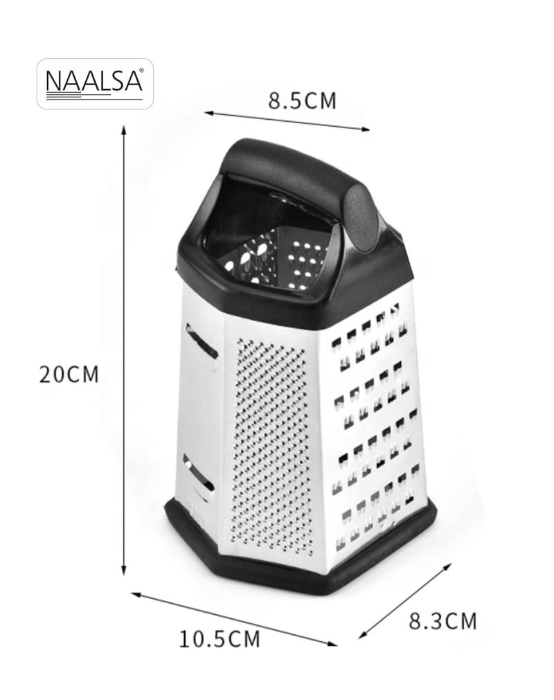 GRATER FOR KITCHEN HANDHELD - With a generously sized ergonomic handle that offers a comfortable grip without putting any undue strain on your hand, a non-slip bottom that prevents the cheese grater box from slipping , and a generous cavity that can hold sufficient quantity without requiring you to empty it frequently, our hand grater stands a class apart, and is ideal for both professional and home kitchens