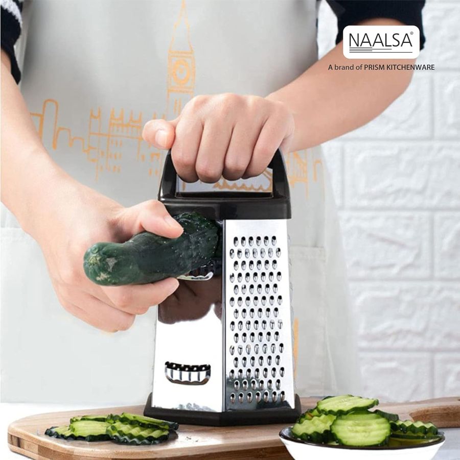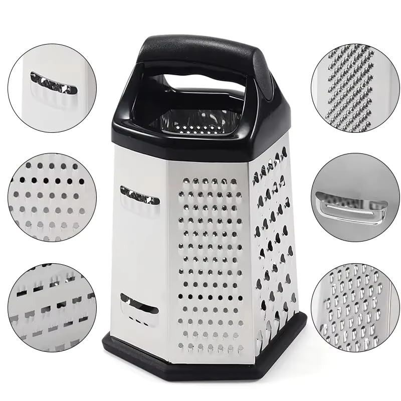 MULTI-PURPOSE KITCHEN TOOL - 6-in-1 multi-function grater lets you say goodbye to extra kitchen tools, Grate vegetables like a pro, soft/hard cheese effortlessly with wider surface & coarser side, extract maximum flavour of citrus rind with a dedicated zester side, grate breadcrumbs or ginger using finer mesh, or slice cucumbers & other veggies in a breeze using the slicer plane. With this, you can sure make a delicious meal in lesser time.