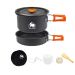 8 PIESES CAMPING COOKWARE KIT: This Outdoor Backpacking Cooking Set includes 1 Aluminum Non-stick Frying Pan + 1 Anodized Aluminum Pot + 3 Bowls + 1 Bamboo Spoon + 1 Soup ladle + 1 Cleaning Sponge + 1 Mesh bag, which is equipped with all of your kitchen essentials, and it is designed for3 people, perfect for camping, hiking, backpacking, picnic and other outdoor activities.