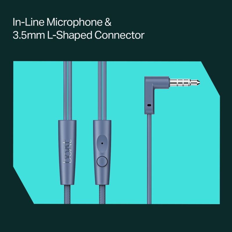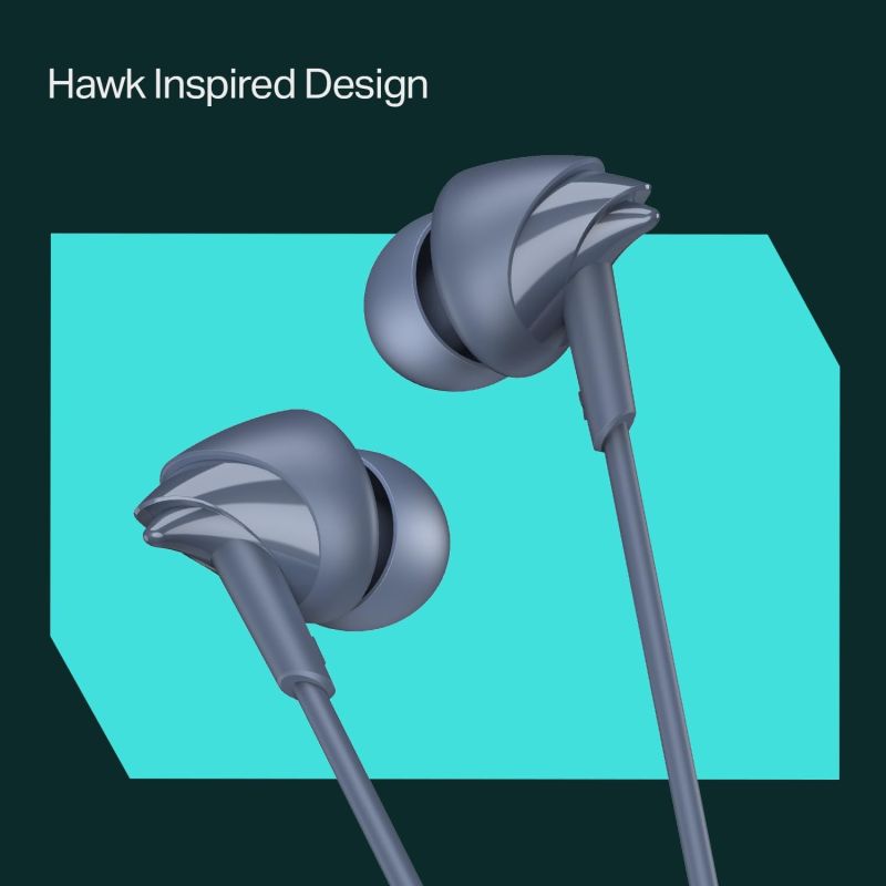 Hawk-inspired Aesthetics: boAt BassHeads 213L Wired Earphones flaunt a sleek design, echoing the fierce silhouette and bold contours of a hawk for a sharp, standout style.