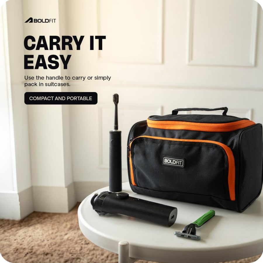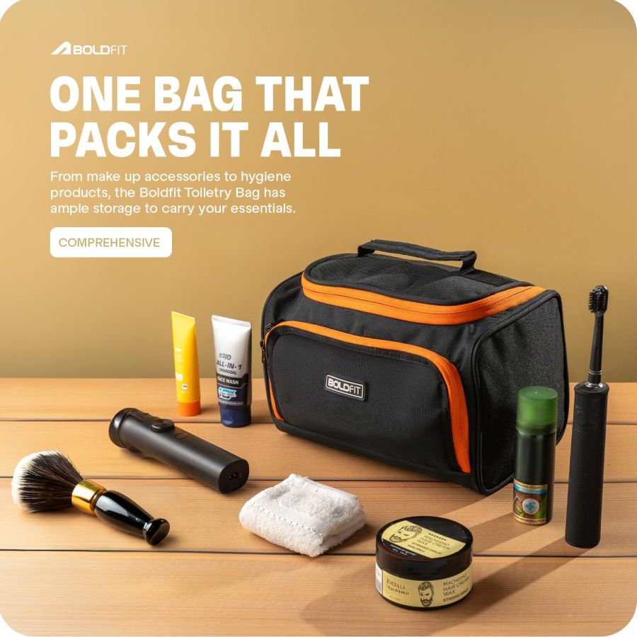 Boldfit Toiletry Bag,Spacious Toiletries Organiser with Multiple Compartments,Compact Gym, Travel Toiletry Pouch for Men & Women,Cosmetic & Grooming Storage Kit for Luggage with Zipper Closure,Black