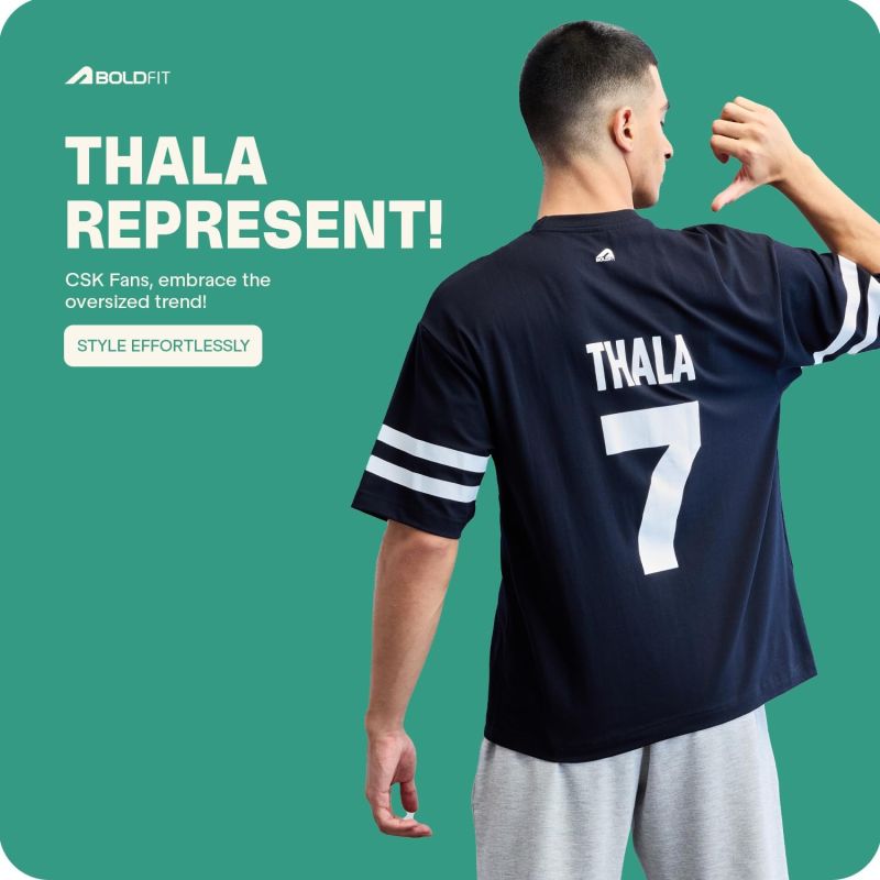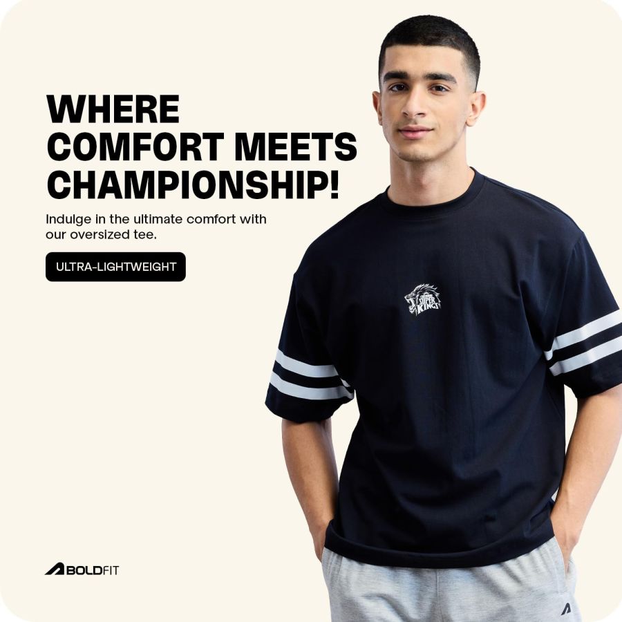 Boldfit X Chennai Super Kings CSK Official Merchandise Oversized T Shirt for Men Thala 7 Tshirt Dhoni Oversized T Shirts for Men CSK Fan Tshirt
