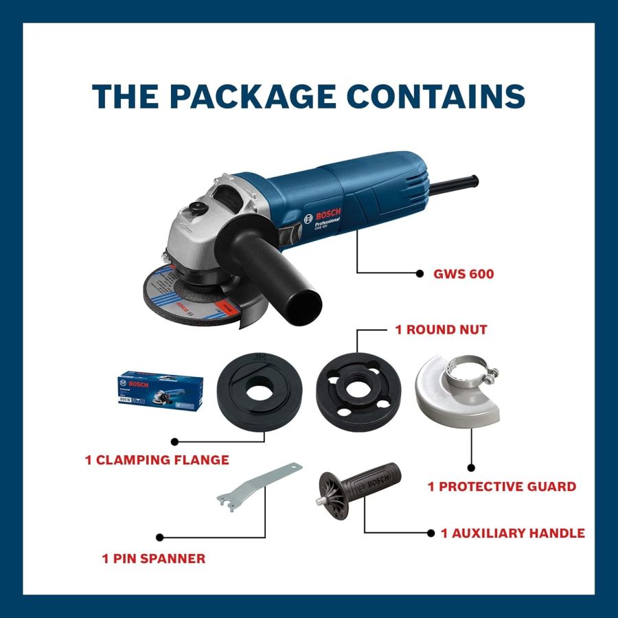 Powerful Machine Design: BOSCH Professional GWS 600 Angle Grinder is equipped with a strong motor and a sleek, lightweight design to promote comfortable working. Its durable construction ensures long-lasting performance, making it ideal for professional applications.