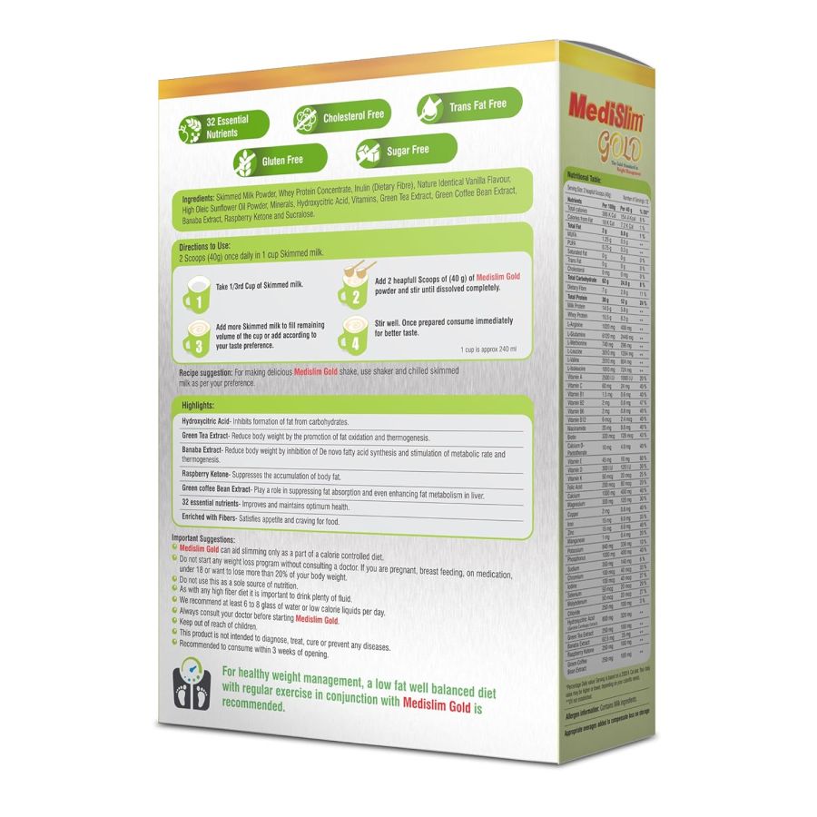 WEIGHT MANAGEMENT SUPPORT : Specially formulated to aid weight loss, Medislim Gold provides balanced nutrition to replace one full meal, helping you control calorie intake effectively.