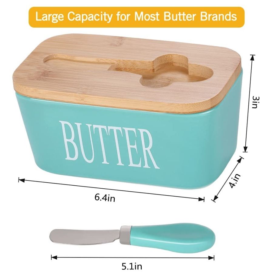 UPDATED VERSION The lid has a groove that perfectly fits the knife, integrating the butter knife, and butter box. Don't worry about not having a butter knife when you want to cut some butter. The upgraded bamboo lid is more durable than the previous lids,Unlike synthetic materials, bamboo will age gracefully. It also brings a natural style to your kitchen.