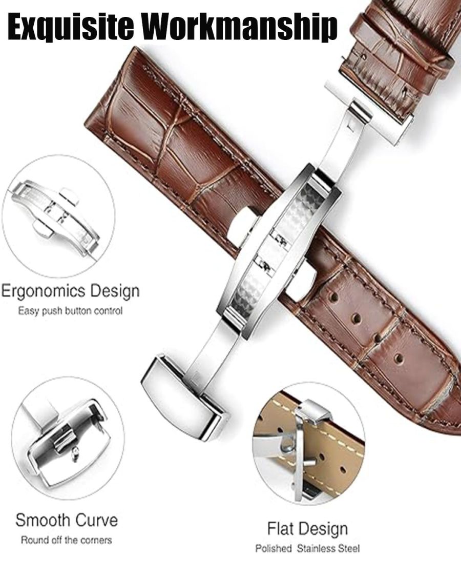 Innovative Design: Features a double push button mechanism for easy and secure attachment to your watch; The butterfly clasp design provides a sleek and seamless look, enhancing the overall aesthetic of your timepiece