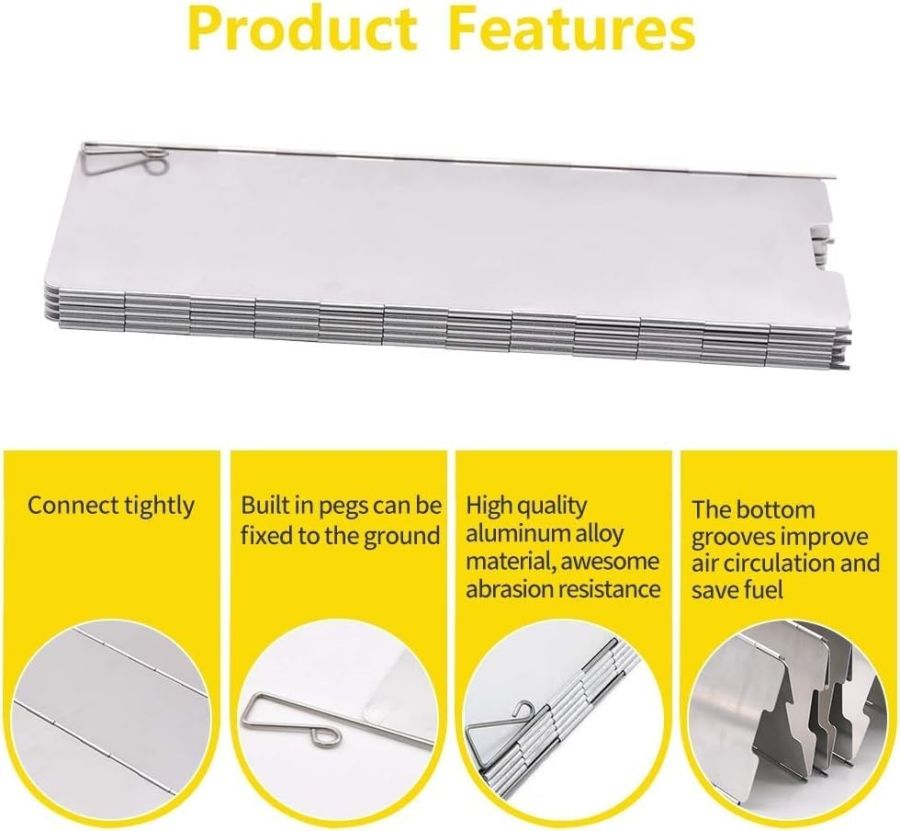 - 【Removable Windscreen】- The stove windshield has 10 removable plates, which can be removed/folded to different size to be installed around different sizes of stove