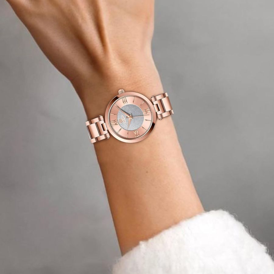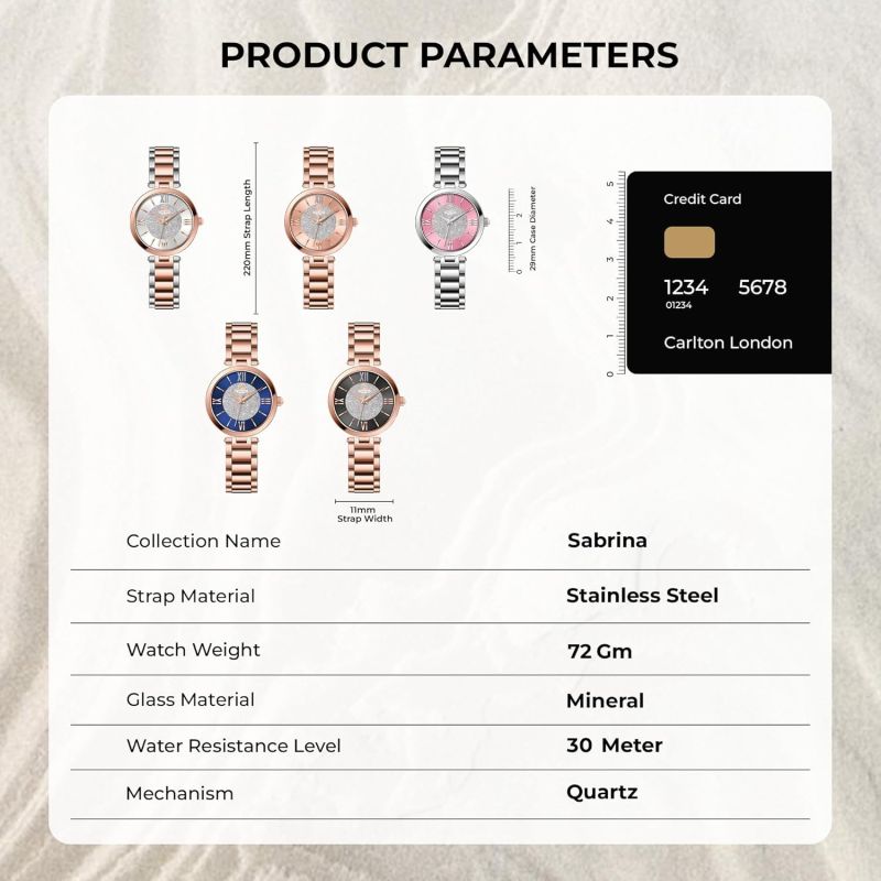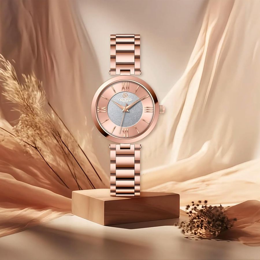 Carlton London Sabrina Stainless Steel Analog Watch | Gold Waterproof, Fashionable & Trendy Quartz Movement Wrist Watch for Women & Girls - CLRGSPNK
