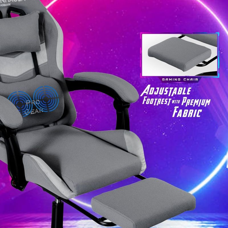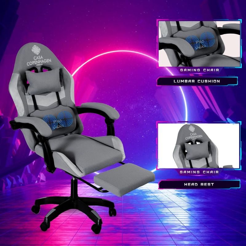 Massage Lumbar Pillow and Folding Footrest: Soothe fatigue from long sitting with our gaming chair's massage lumbar pillow, activated by a USB switch. Extend the cushioned footrest for extra comfort. A handy back pocket neatly keeps the cable and small items within reach