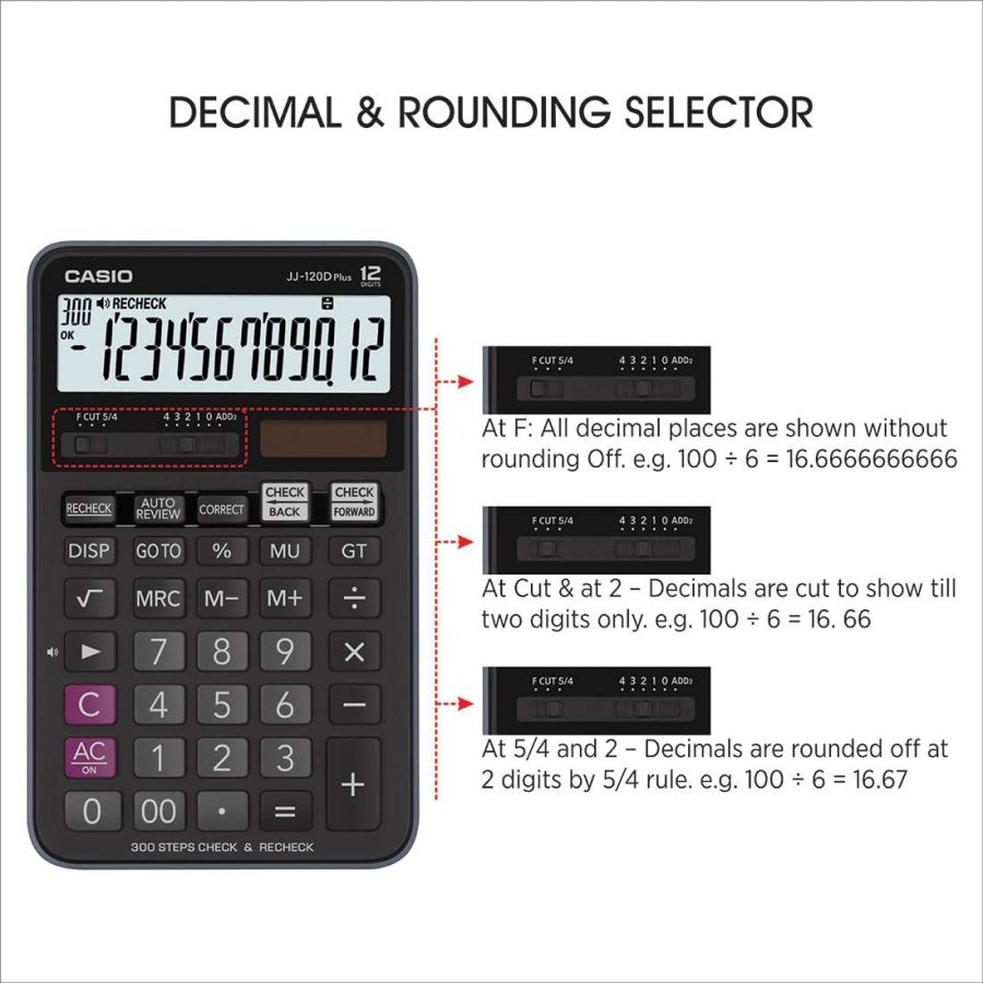 Casio JJ-120D Plus 300 Steps Check & Correct Desktop Calculator with On Display Indication of Active Constant (K)