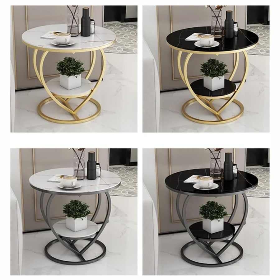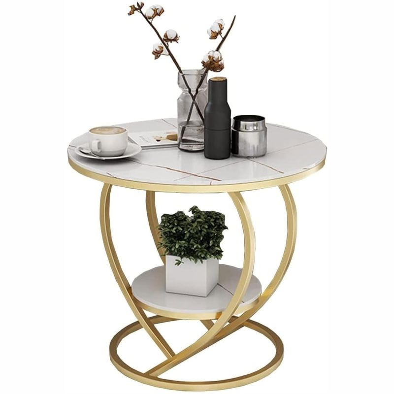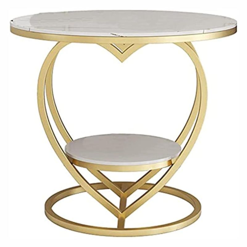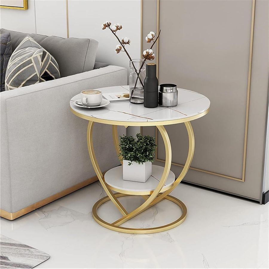 Coffee Table for Living Room,Modern Corner Sofa Side Bedside Tables Snack End Table for Bedroom,White Table Top with Gold Metal Frame (Gold White)