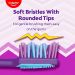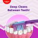 Soft Tongue cleaner attached to the toothbrush head gently removes odor causing germs to freshen breath