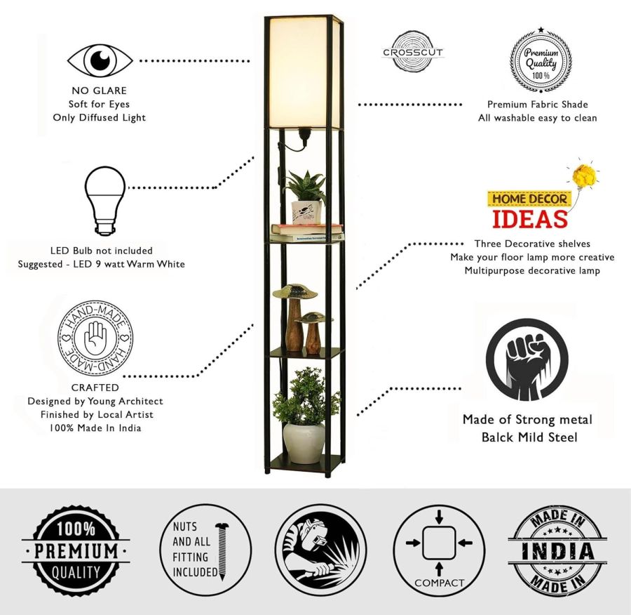 Crosscut Furniture Tower Floor Lamp with Shelf (Cotton White, led)