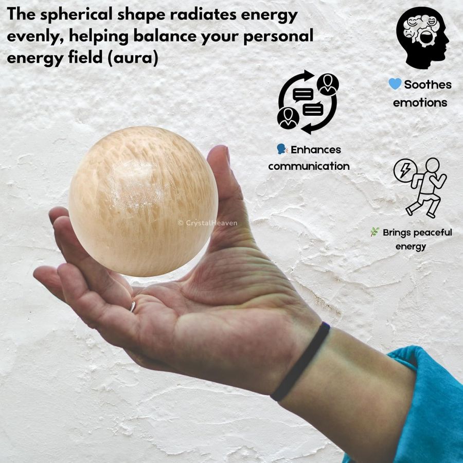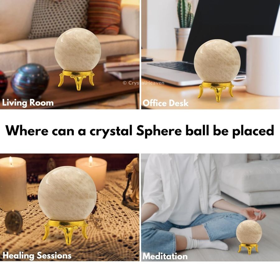 Positive Energy Enhancement : This cream moonstone crystal ball is a perfect addition to your positive energy items for home, bringing positive energy and harmony to any space. Ideal for meditation and relaxation.