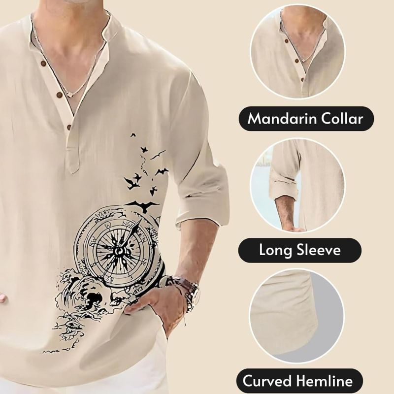 DEELMO Men's Cotton Blend Mandarin Collar Self One Design Full Sleeve Casual Short Kurta