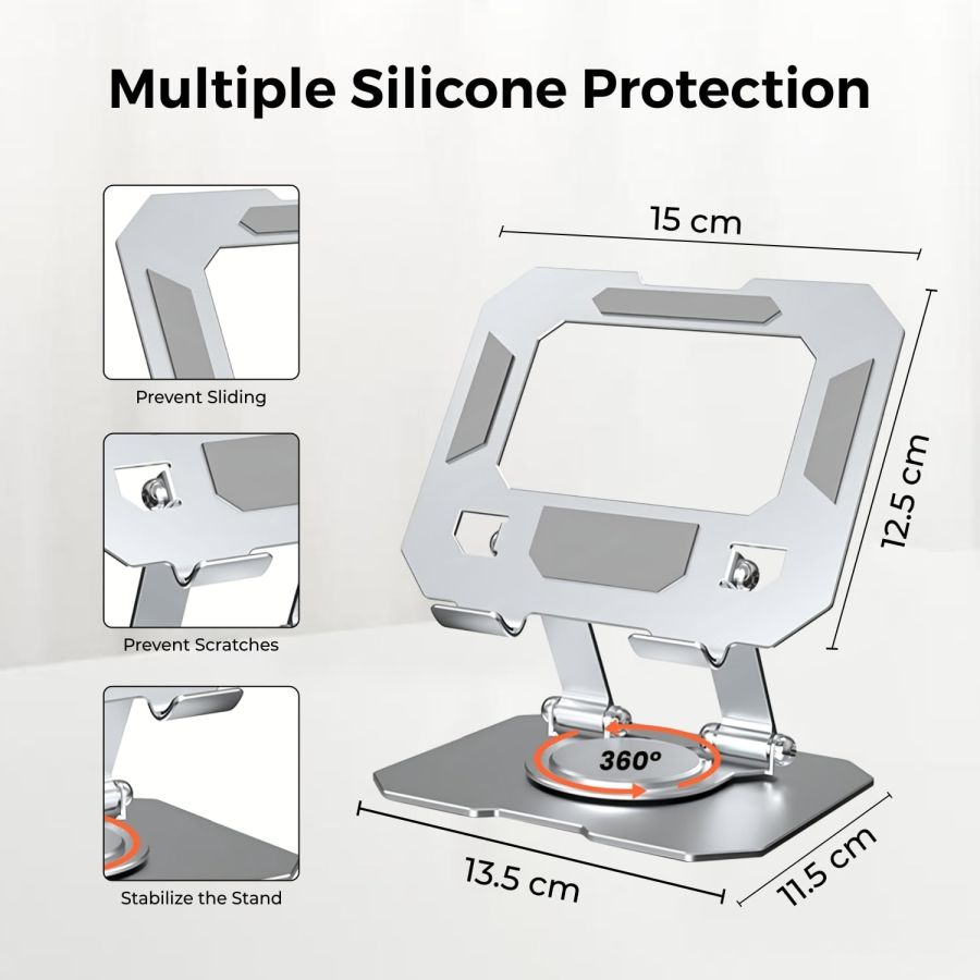 Sleek and Modern Design: The elegant silver finish and modern design of the Dyazo Tablet Stand complement any workspace or home décor. Its compact form factor makes it easy to integrate into your setup without taking up too much space.