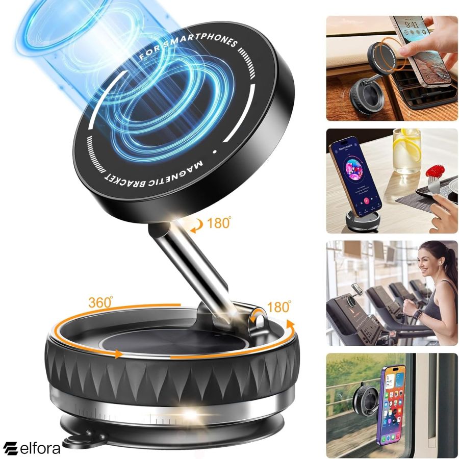 Powerful Suction Cup with Twist-Lock for Extra Grip : The upgraded suction cup uses twist-lock technology for stronger grip. The more your car shakes, the tighter it holds—perfect for dashboards, mirrors, windshields or any flat surface.