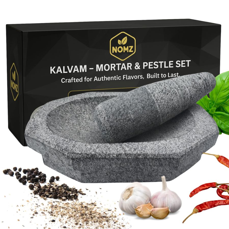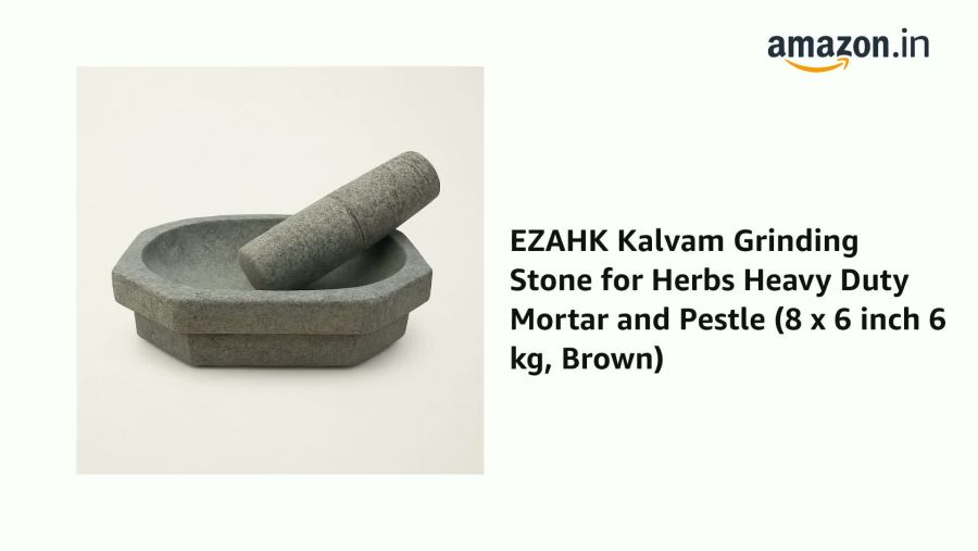 EZAHK Kalvam Grinding Stone for Herbs Heavy Duty Mortar and Pestle (8 x 6 inch 6 kg, Brown)