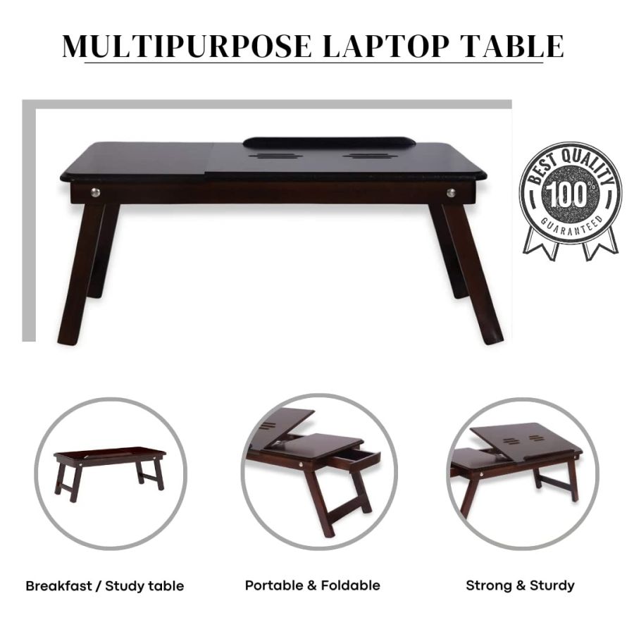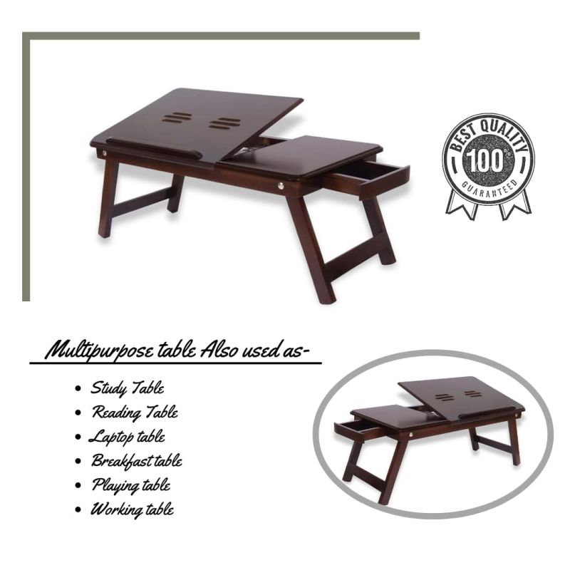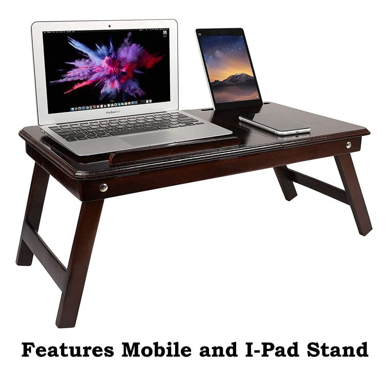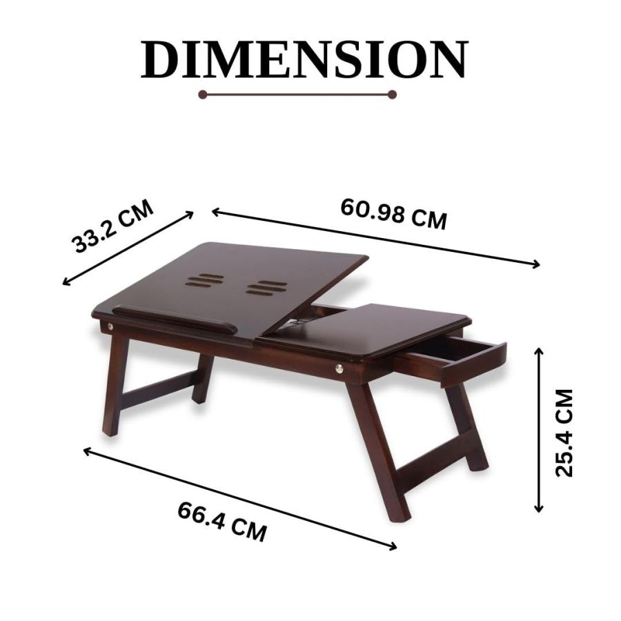 Fabulo Wooden Standard Adjustable Laptop and Study Table/Portable Lap Desk - Multipurpose Bed Table with Folding Legs and Drawer - Walnut Finish