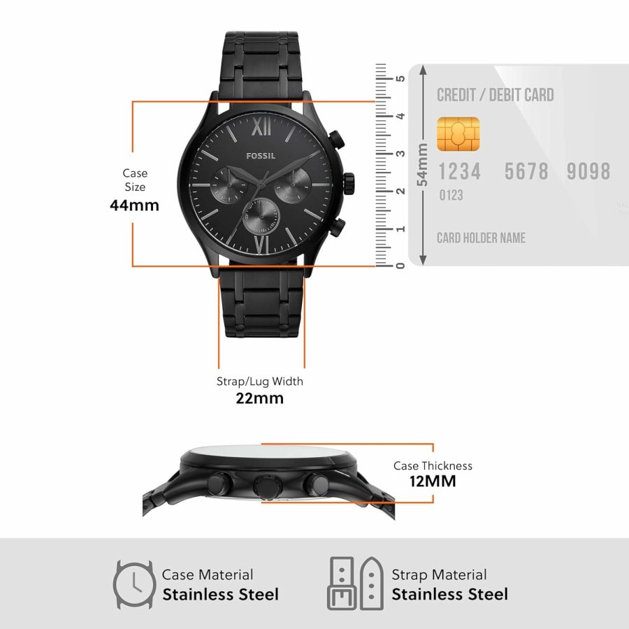 - Black plated stainless steel bracelet with 2 pusher foldover clasp closure; interchangeable with Fossil 22mm watch straps