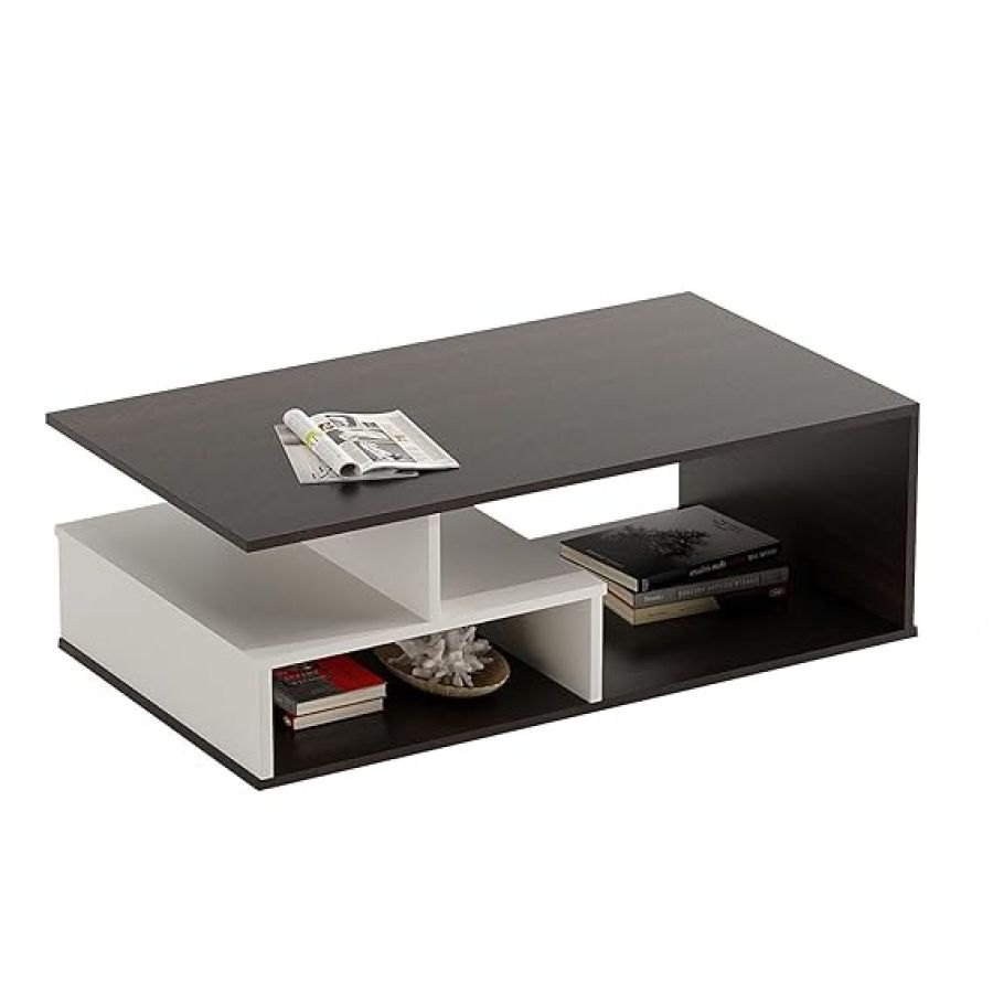 FURNEASER Witely 2-Tier Engineered Wood Coffee Table with Storage Shelves, Modern Centre Table for Living Room & Sofa, Matte Wenge & White Finish