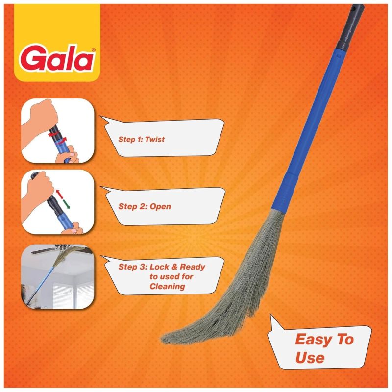 Gala No Dust Broom 2 in 1 with Extendable Handle for Ceiling and Floor Cleaning, Long Handle Jhadu