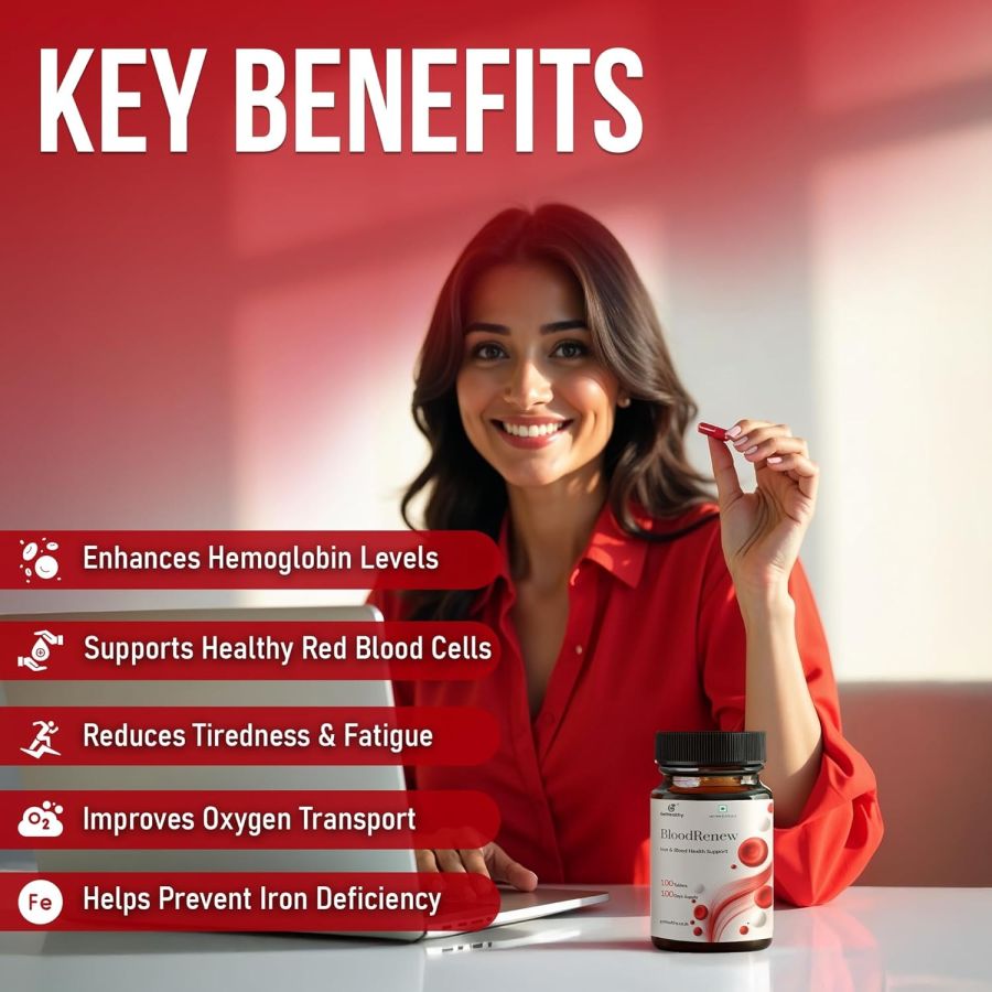 SUPERFOOD BLOODRENEW BLEND: Amla, Beet & Spirulina: Powered by 250 mg of our proprietary blend with antioxidant-rich Amla Extract, Beetroot, Spirulina (Phycocyanin), Spinach Leaf, and Pterocarpus—designed to support iron levels naturally and holistically.