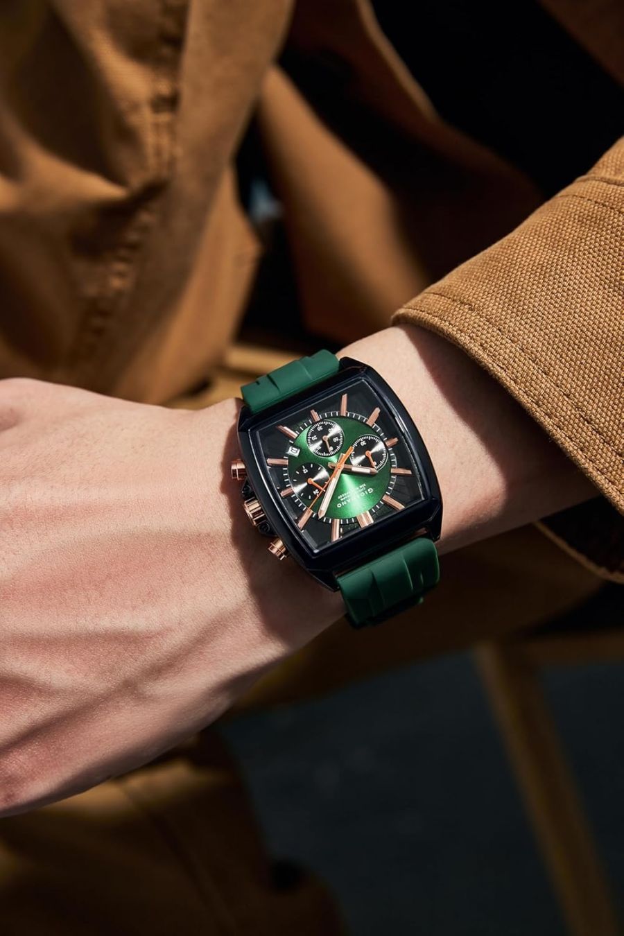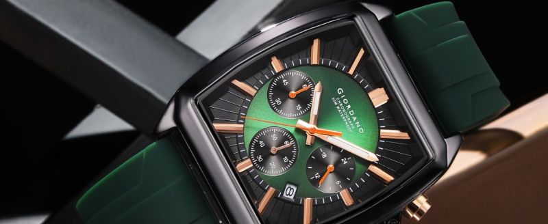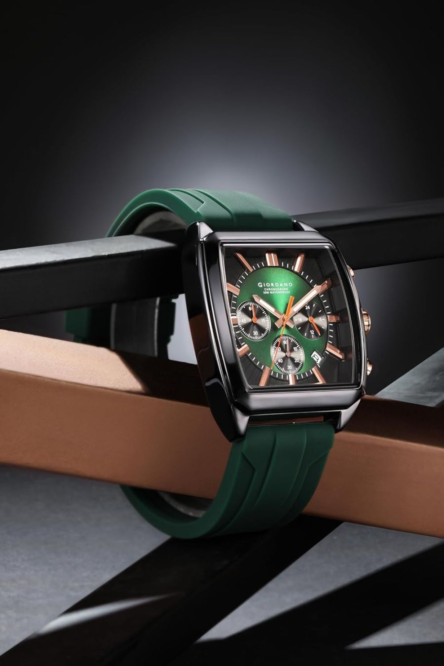 Giordano Modern Square Face Chronograph Watch for Men with Rose Gold Accents,Silicon Strap & Date Display